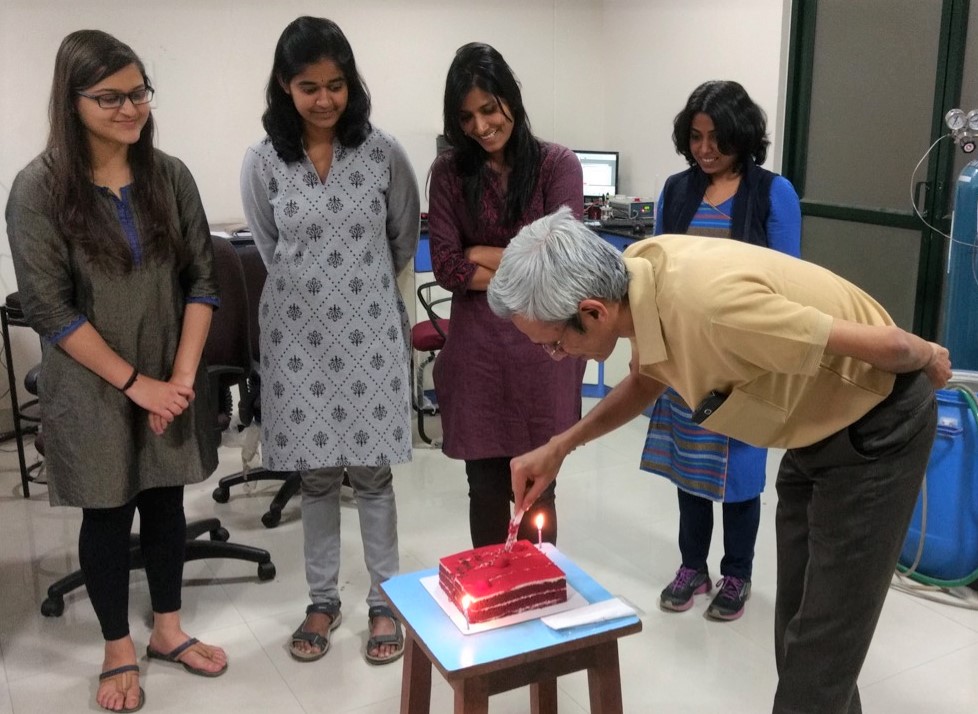 Ravi's b'day at lab, 2016. They all are staring at the cake!