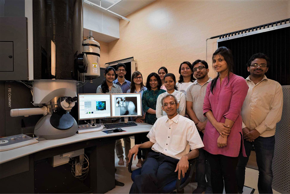 Group members near India's first electron microscope (horizontal one!) by Late Prof. N. N Dasgupta, SINP, Kolkata, EMSI - 2013