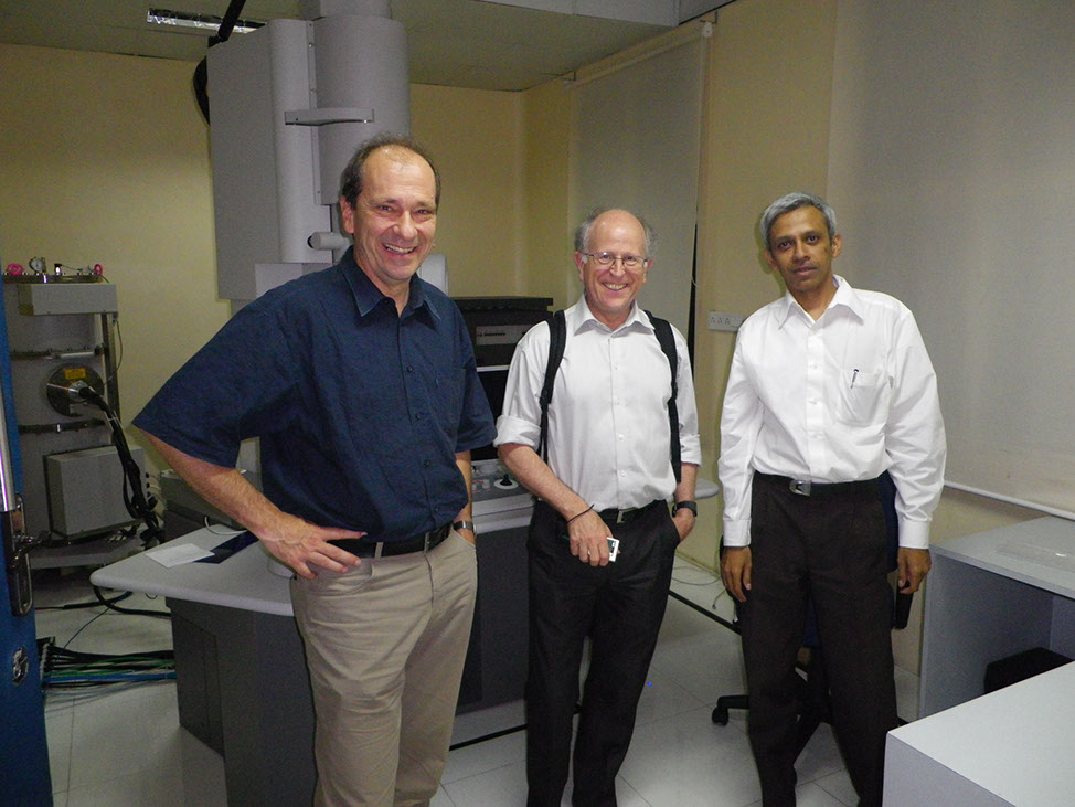 Ravi with Prof. Joachim Mayer and Prof. Barry Carter in front of our lab microscope.