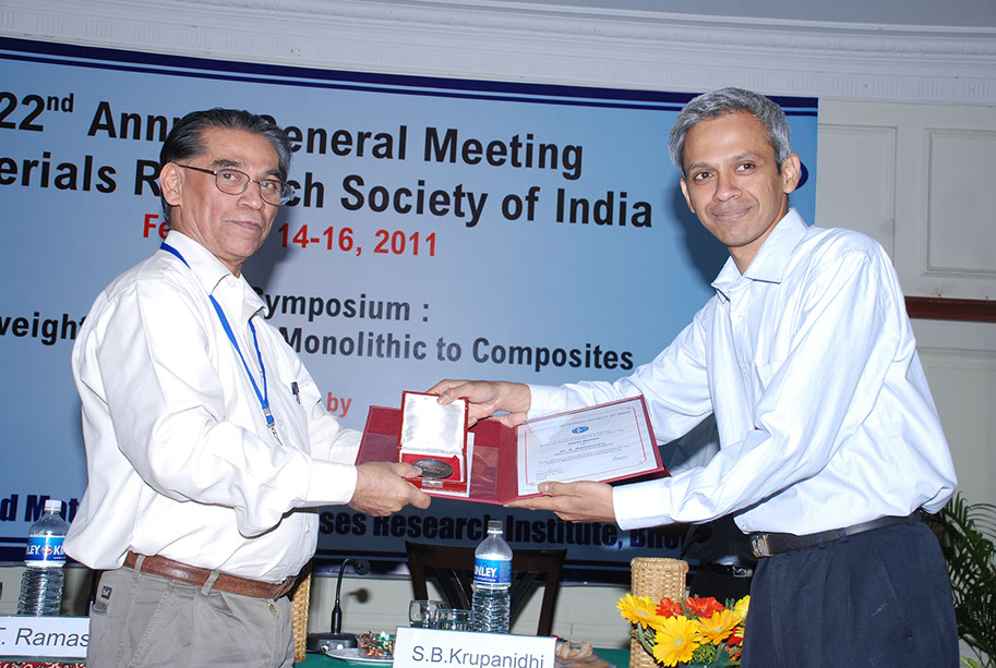 Rajeev receiving the Dr. A. Nagaraja Rao Gold medal (batch topper in Chem, Int. Ph. D, IISc) - 2017